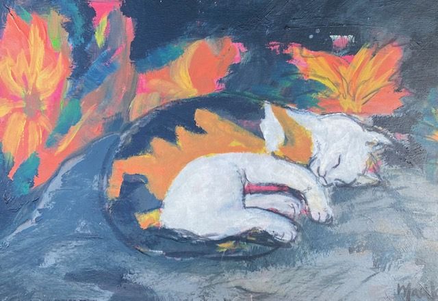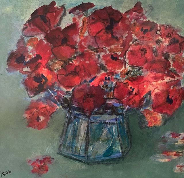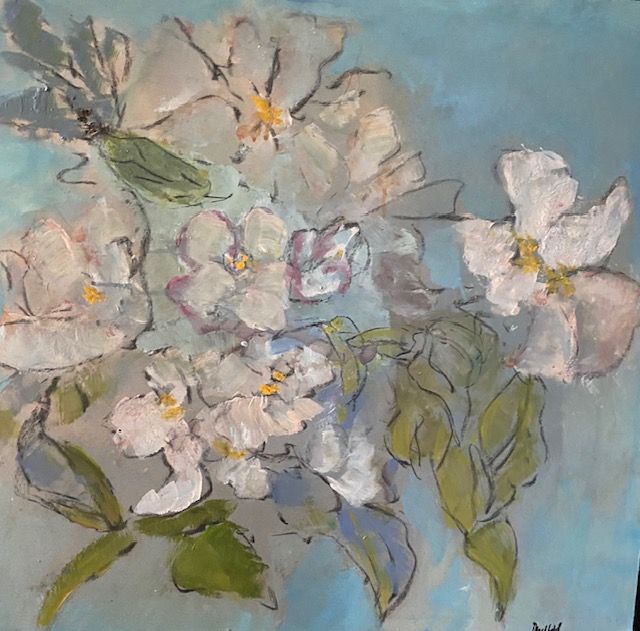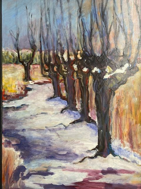 Een schilderij van 60 x 60 cm kost 350-400€, een schilderij van 100 x 100 kost 800-900€ exclusief lijst. De lijst kan bijgeleverd worden tegen kostprijs.